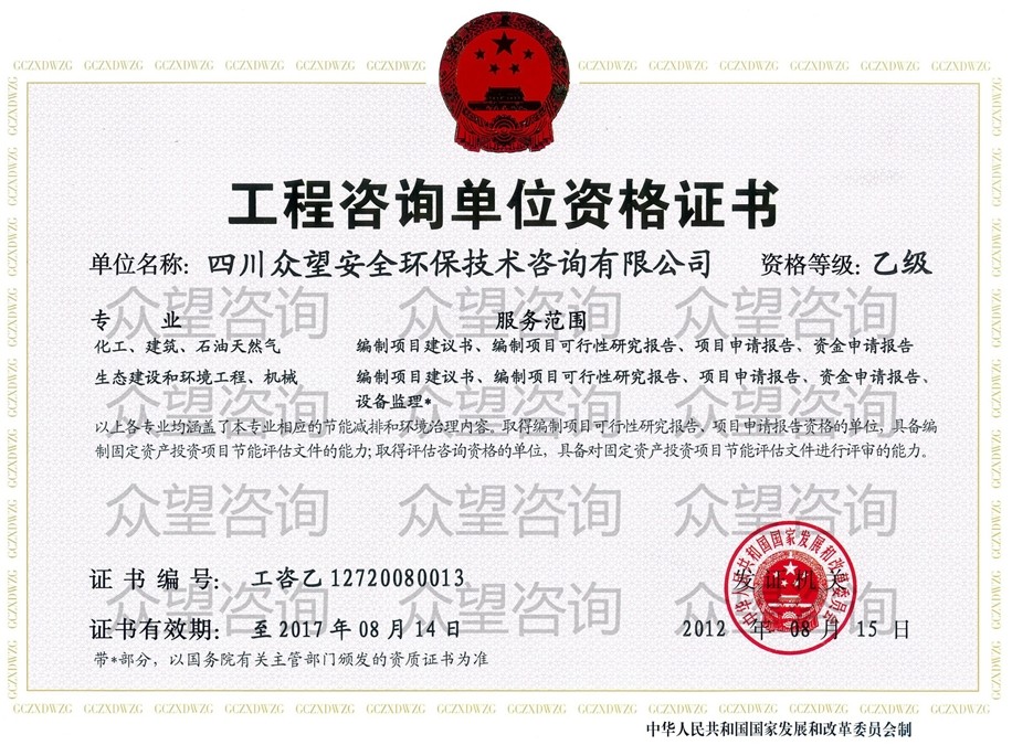 四川眾望安全環(huán)保技術(shù)咨詢有限公司 電 話:028-86258172/86258173/028-86258174/86258095 傳 真:028-86258093/86258552